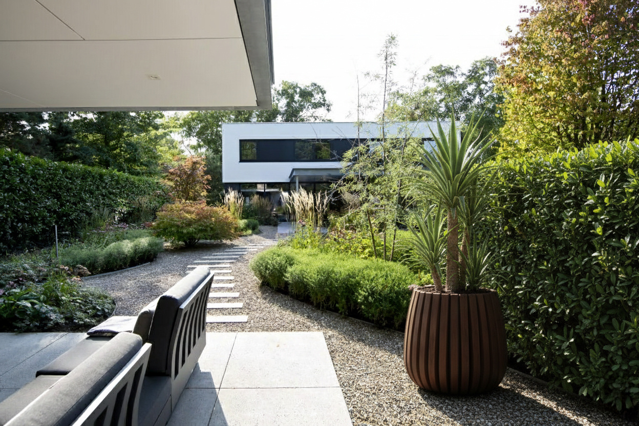Door het gebruik van duurzaam bamboe geeft deze plantenbak iedere tuin een warme en natuurlijke uitstraling. Dankzij de karakteristieke lamellen en het moderne ontwerp vormt deze plantenbak een opvallend en elegant element.
