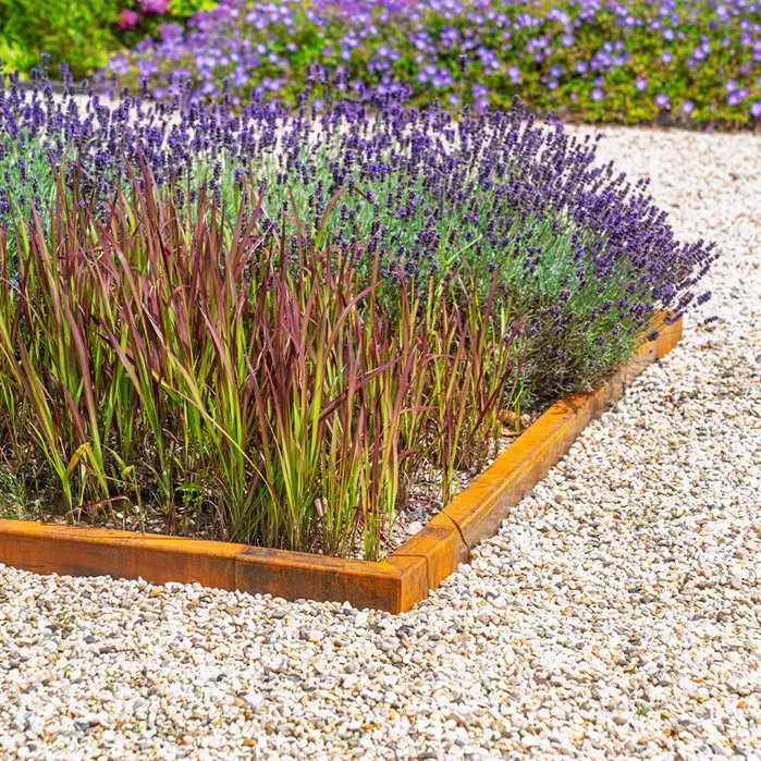 Cortenstaal heeft een lange levensduur, waardoor u verzekerd bent van duurzaam materiaal in uw tuin. De overzetprofielen danken hun kenmerkende karakter aan de beschermende roestlaag. Deze varieert van warm oranje tot roodbruin. Tevens geeft de kleur uw tuin een eigenzinnig karakter.