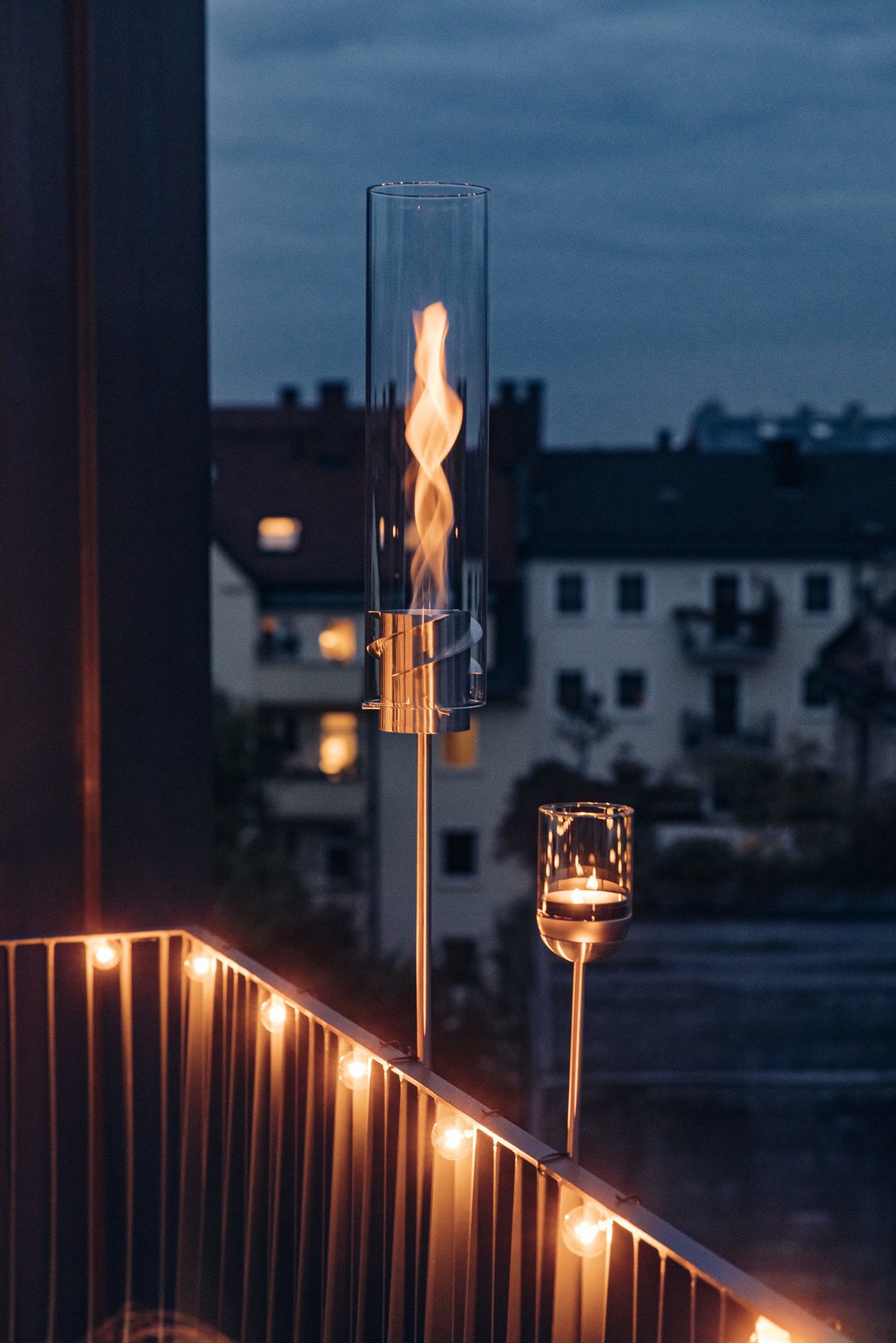 Hoe werkt het: Het gebruik van de Höfats spin 90 sfeer lantaarn is kinderlijk eenvoudig! Stop bio-ethanol in de navulbus van de lantaarn, plaats hem in de grond en steek de fakkel aan met een lange aansteker. Plaats hierna de glazen cilinder om het vuur heen en geniet van het dansende vlammenspel!