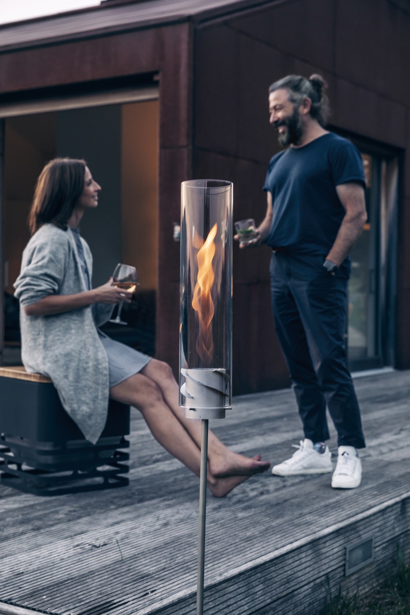 De "SPIN-vlamvortex" wordt gecreëerd doordat het vuur brandt in een glazen cilinder. De vlammen stijgen op en draaien door drie schotten, met een betoverend vlammenspel tot gevolg!