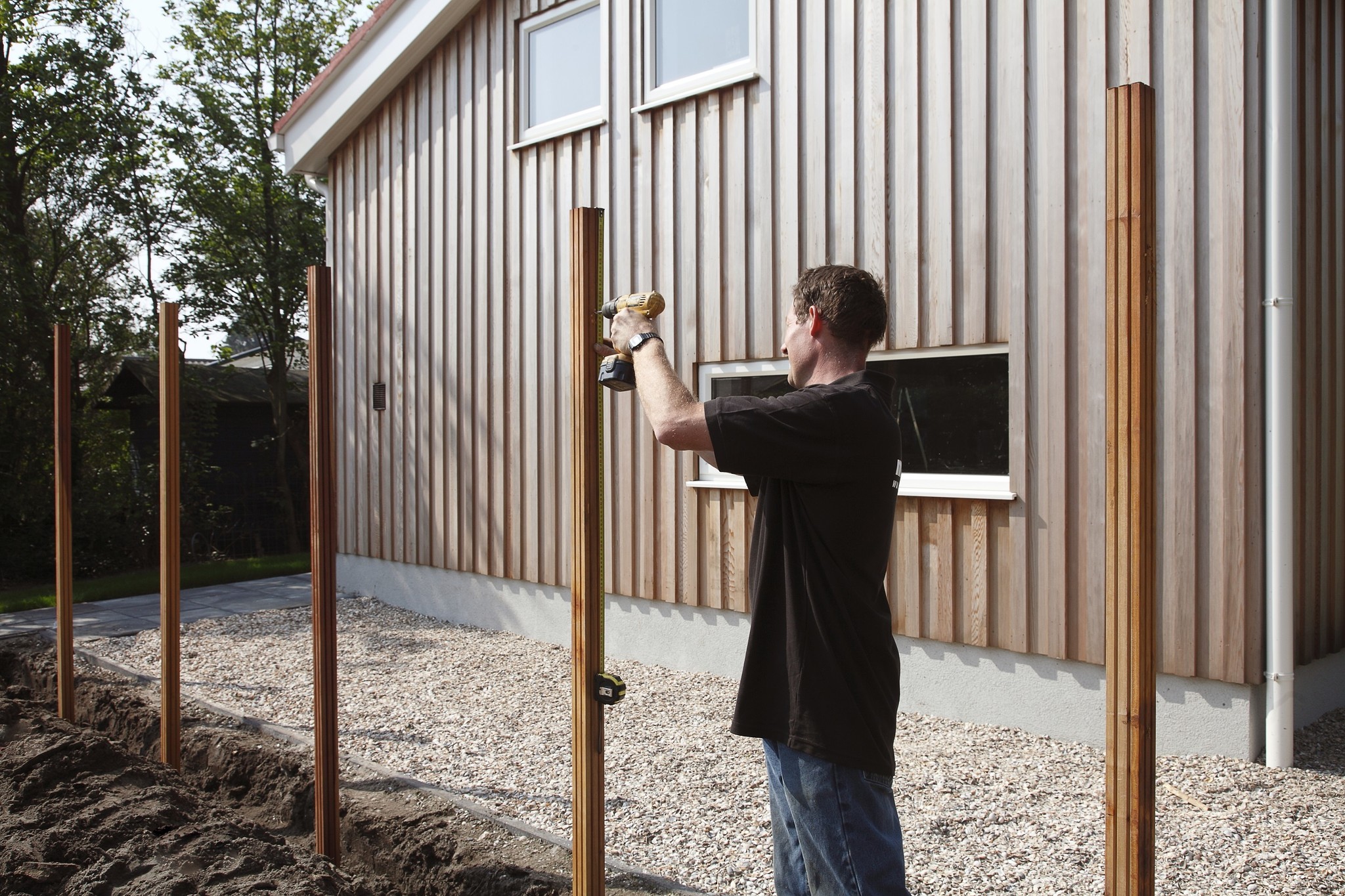 De hagen kunnen zowel aan ijzeren als houten palen worden bevestigd door middel van speciaal ontworpen beugels. Ook is het mogelijk om de kant en klaar haag tegen een muur te plaatsen. De palen, poorten en bevestigingsmaterialen treft u aan bij de accessoires.