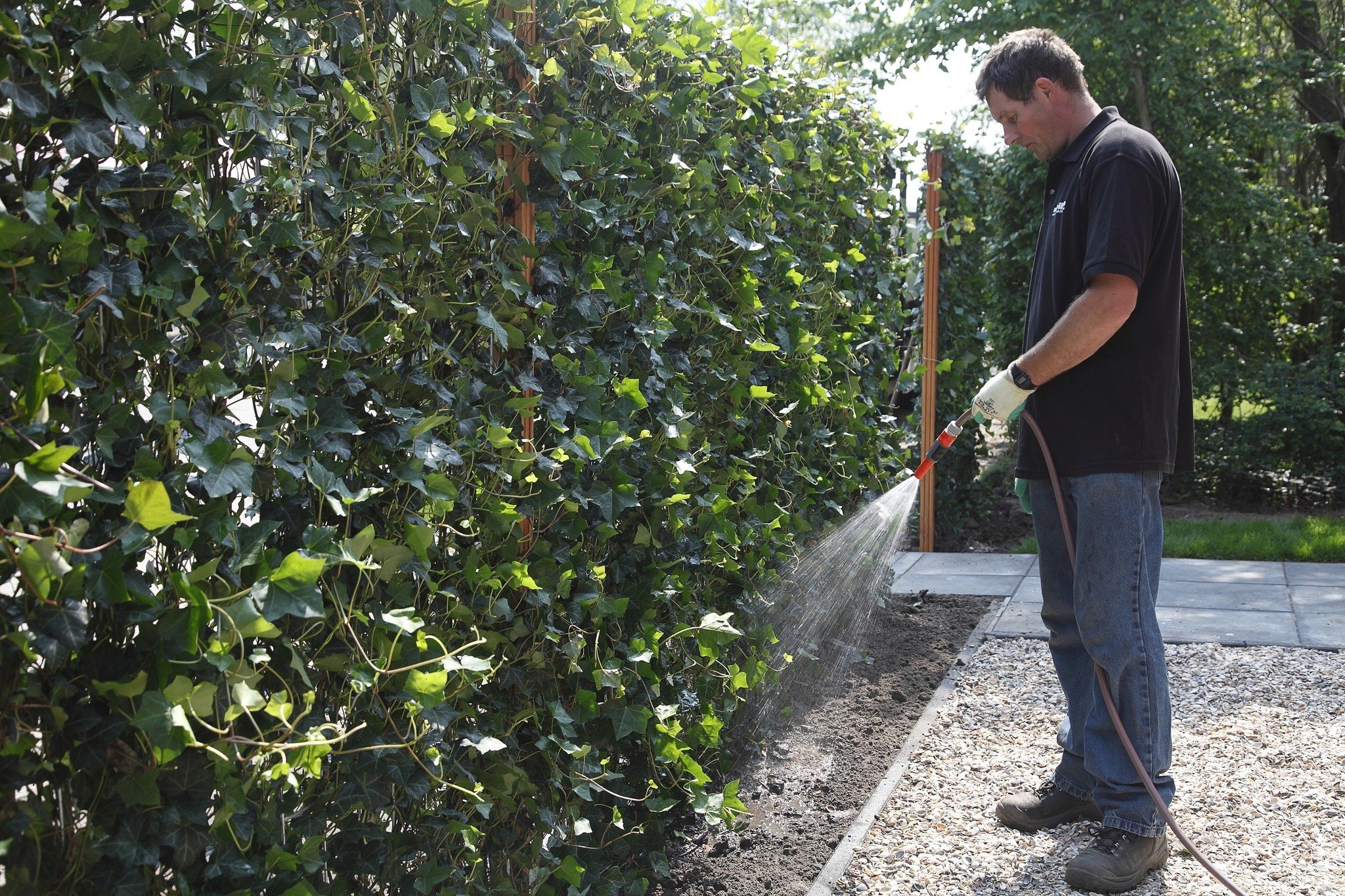 Onderhoud: Zoals gezegd, heeft u maar weinig onderhoud aan de kant en klaar haag. Snoei de Hedera helix Glacier 2 maal per jaar goed kort, dan woekert hij niet en heeft u het hele jaar door een schitterende haag. De beste momenten om te snoeien zijn eind juni en eind september. Wel is het belangrijk om regelmatig water te geven, zeker het jaar na het planten.