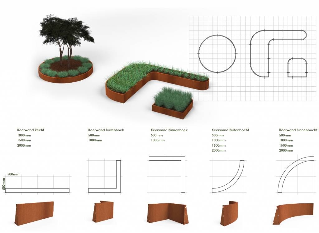 De keerwanden zijn een duurzame oplossing om u gazon, borders en bestratingen van elkaar te scheiden. Daarnaast kunt u er ook mooie plantenbakken of verhoogde borders mee maken!