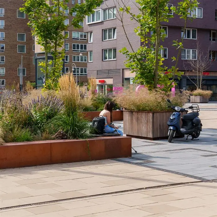 Warme, industriële uitstraling: De cortenstaal keerwand dankt zijn kenmerkende karakter aan de beschermende roestlaag. Deze varieert van warm oranje tot roodbruin. Tevens geeft de kleur de keerwand een eigenzinnig karakter.