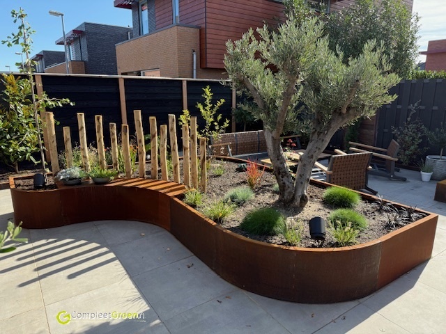 Warme, industriële uitstraling: De cortenstaal keerwand dankt zijn kenmerkende karakter aan de beschermende roestlaag. Deze varieert van warm oranje tot roodbruin. Tevens geeft de kleur de keerwand een eigenzinnig karakter.