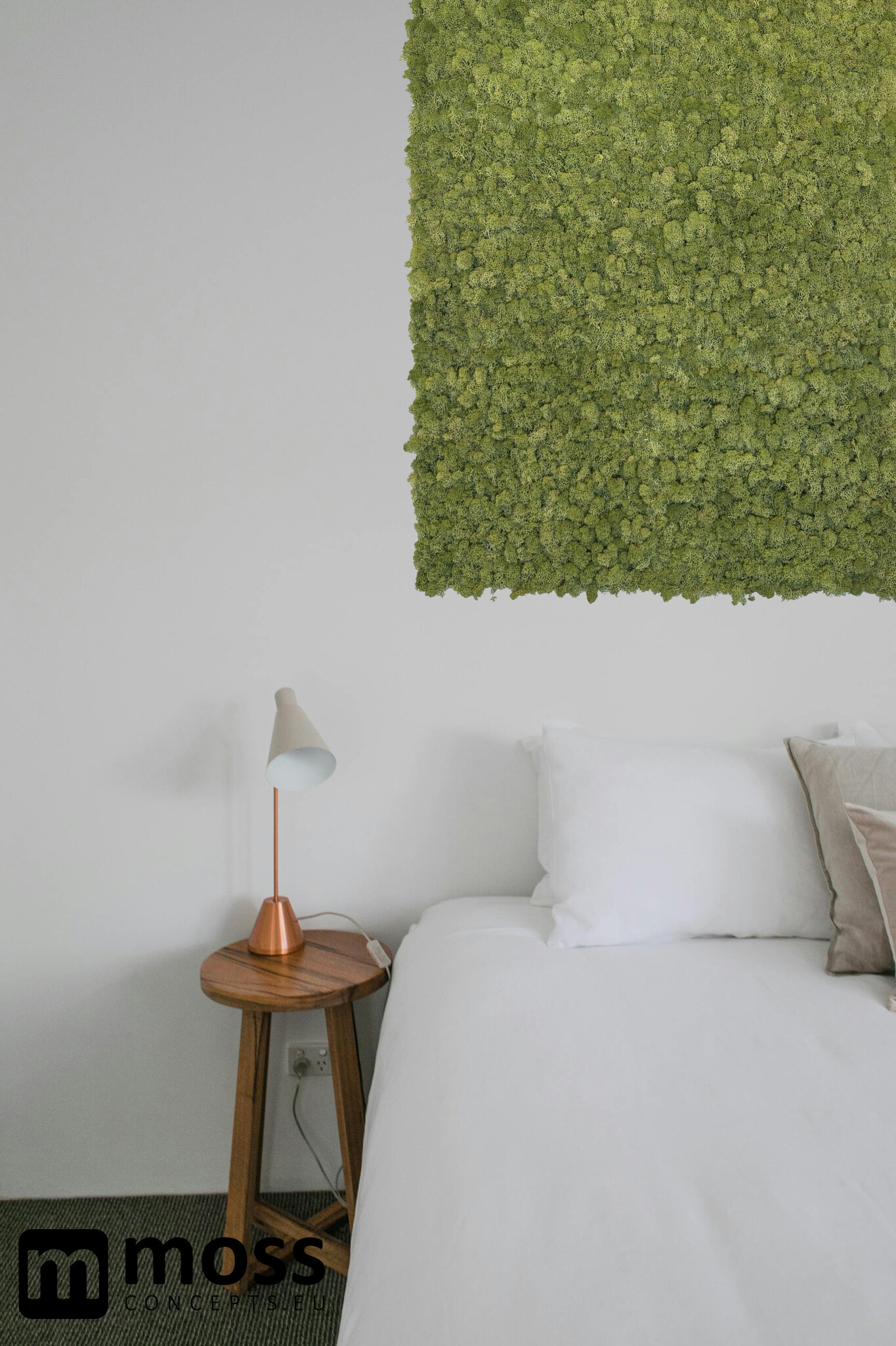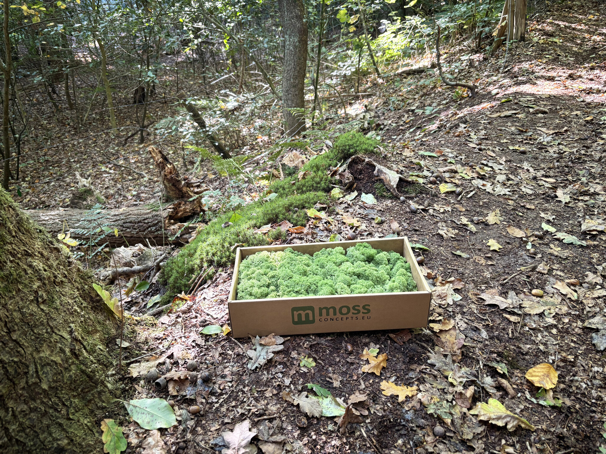 Het mos is gedroogd en geprepareerd (geverfd) en hierdoor te gebruiken als rand afwerking voor onze MOSS concepts moswand panelen of als decoratie in bloemstukken, maar ook voor mos schilderijen.