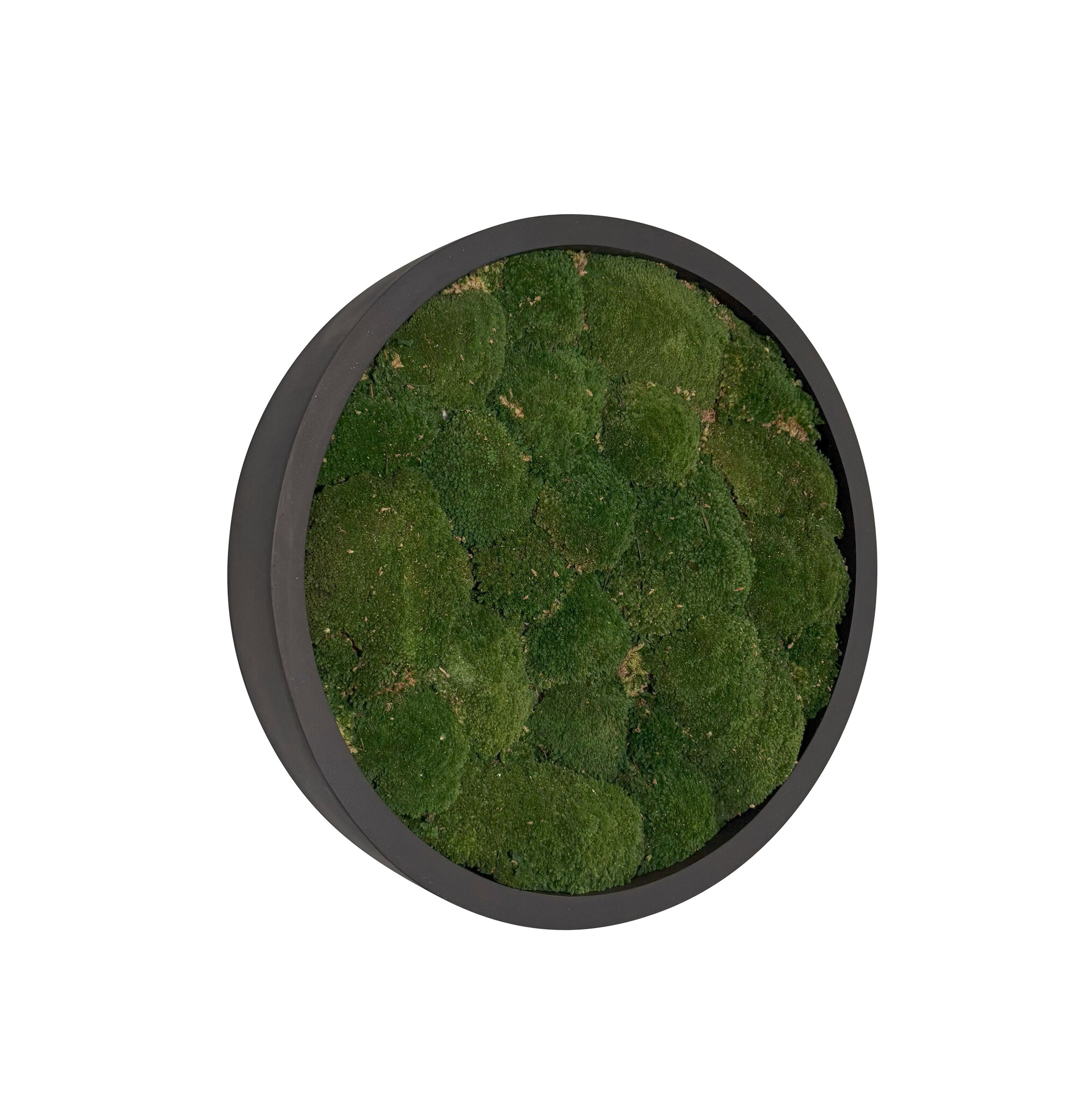 MOSS concepts Bolmos schilderij Jade Fiberstone M is een prachtig bolmos schilderij in de mooie natuurlijk kleur mosgroen! Het mosschilderij heeft een stoere en robuuste zwarte fiberstone lijst.