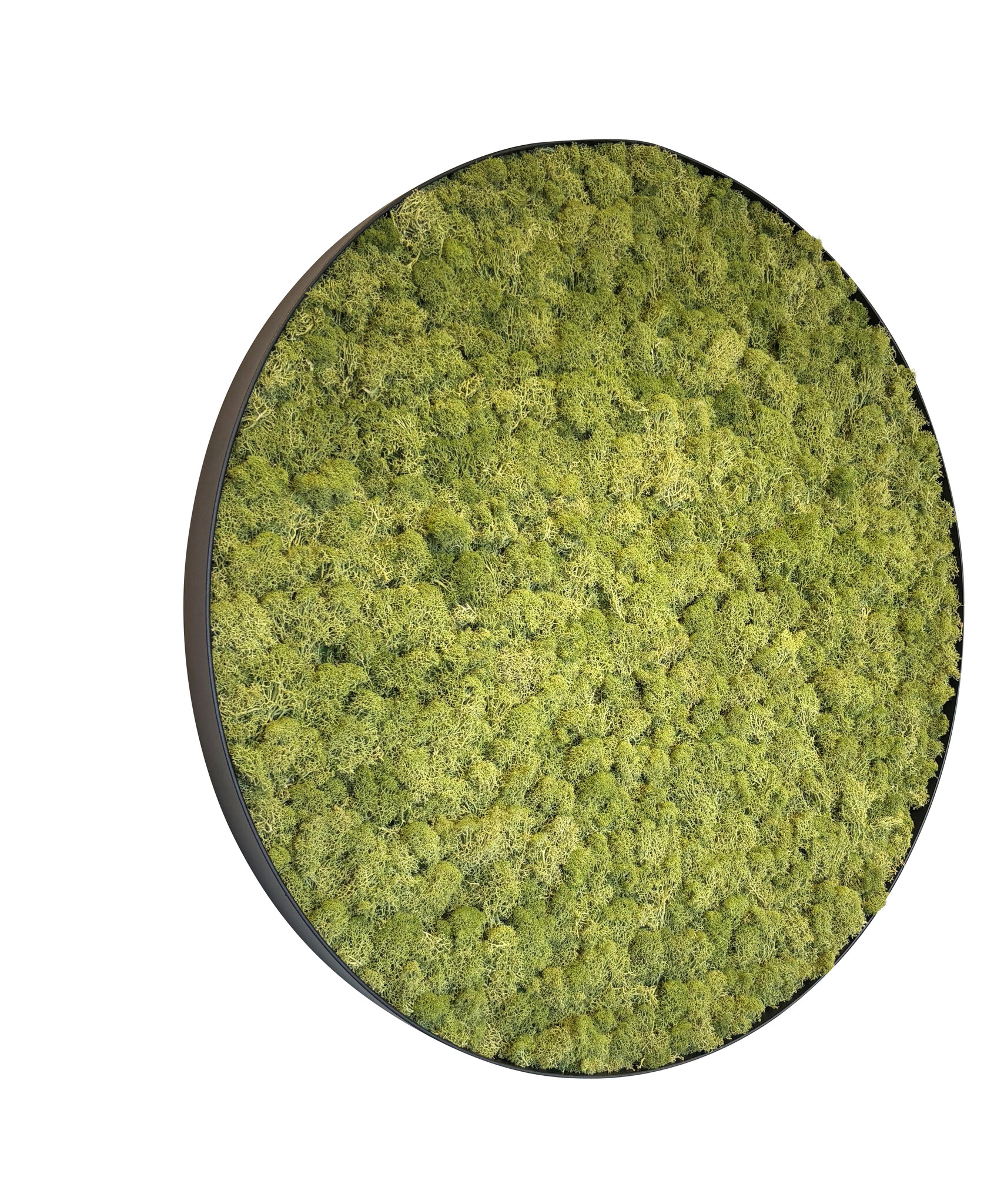 MOSS concepts Mosschilderij Leah Metal 80cm. is een prachtig rendiermos schilderij in de mooie natuurlijke kleur mediumgroen! Het mosschilderij heeft een prachtige metalen lijst met een luxe mat zwarte poedercoating!