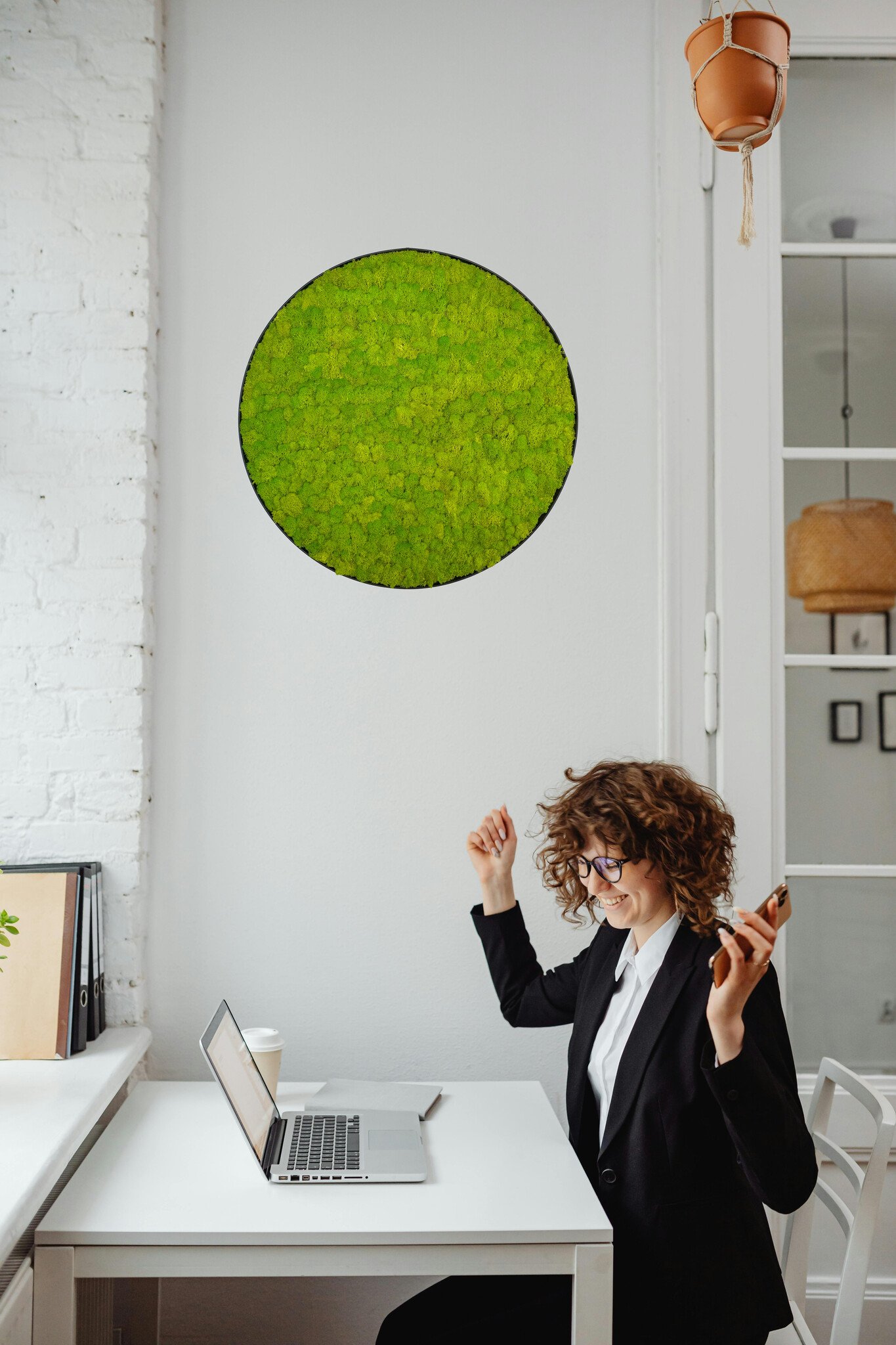 Akoestiek werking: Naast het feit dat een mosschilderij sfeer verhogend werkt, absorbeert een mosschilderij ook geluidstrillingen en verminderen ze het omgevingsgeluid. Wat zeer gunstig is in openbare ruimtes, drukke kantoren en woonkamers.