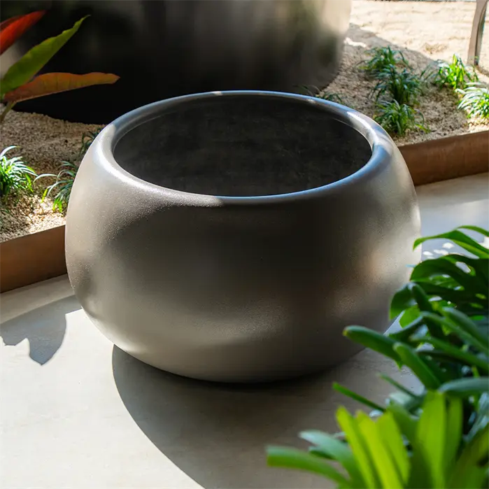 De polyester plantenbak MERO 800x500mm. is een sfeervolle ronde polyester plantenbak met een prachtige warme uitstraling. De fijne structuur en de unieke ronde vorm geven de plantenbak een luxueuze en tijdloze uitstraling waarin u planten prachtig tot zijn recht komen.