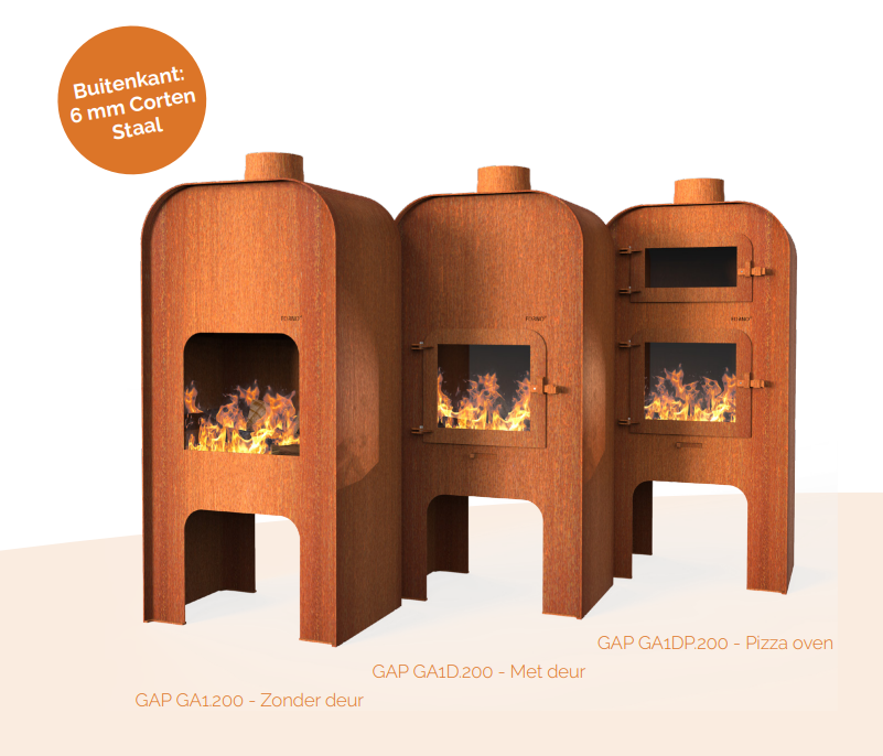 Ruime keuze: De Gap is leverbaar in twee afmetingen 55x50x120 en 75x50x150cm. en kan ook worden uitgevoerd met deur en pizza oven!